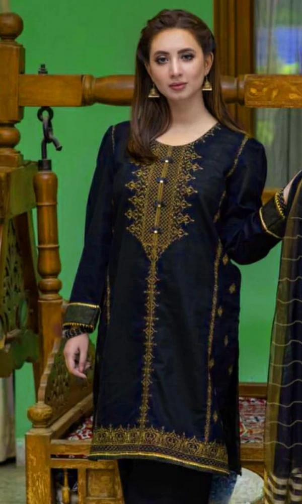 3PC Lawn Embroidered Shirt With Silk Zari Dupatta -BFSIN788 (B)