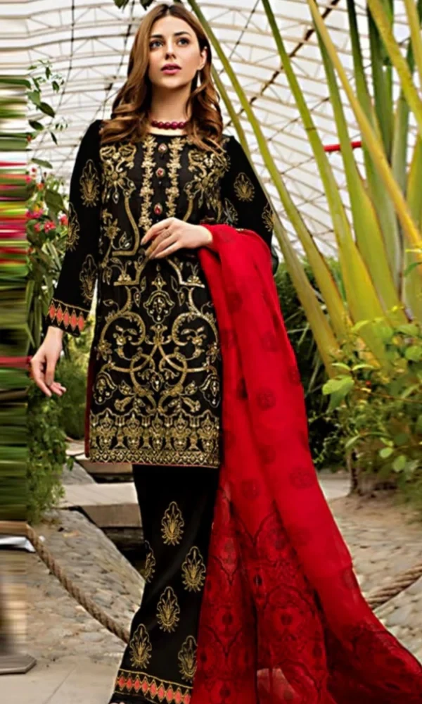 Bareeze – 3PC Embroidered Shirt With Embroidered Dhanak Wool Shawl