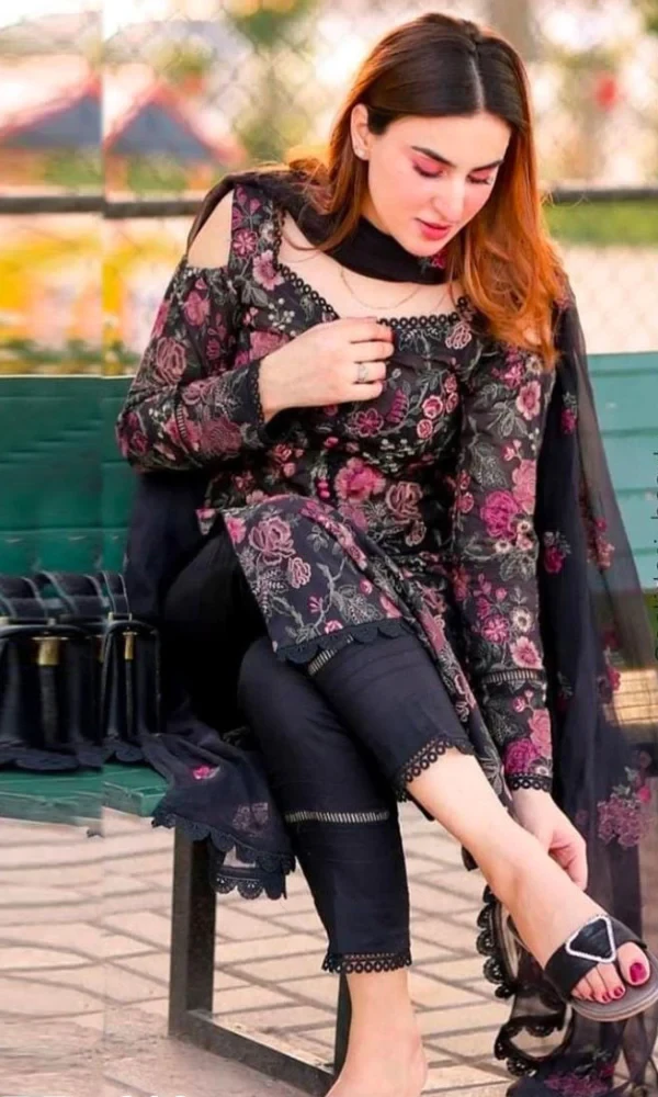 🔷 Front Heavy Embroidered 🔷 Sleeves Embroidered 🔷 Embroidered Bamber Chiffon Dupatta 🔷 Dyed Back with Dyed Linen Trouser