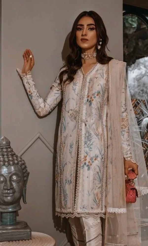 Printed / Embroidered katan Silk three piece suit