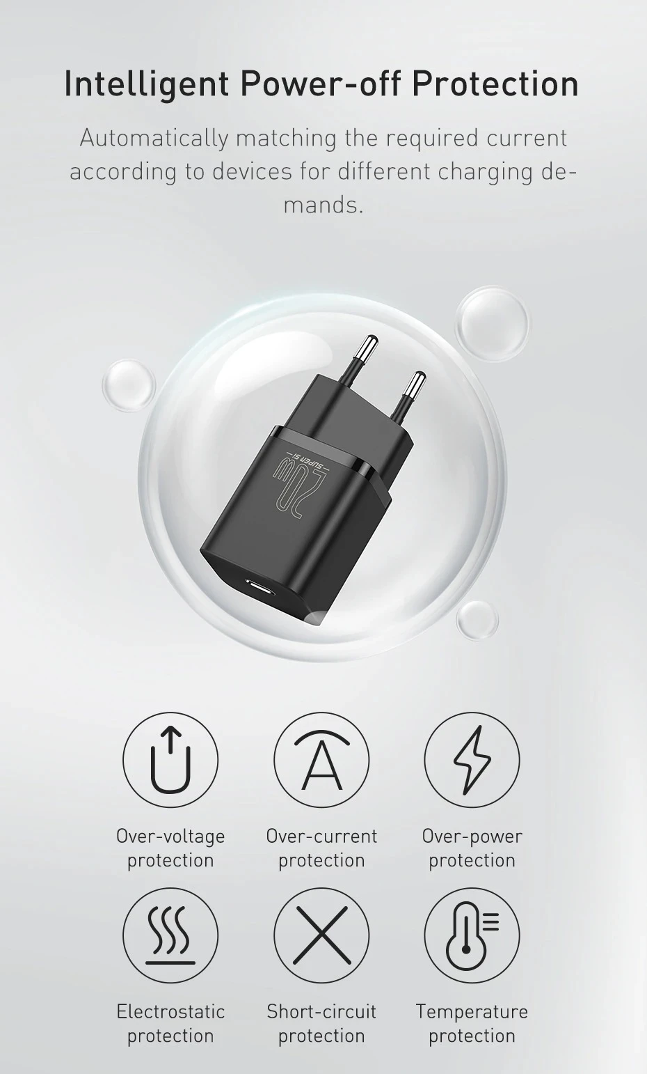 Smart Power Off– Fast charge but won’t hurt your phone. This Baseus USB C charger has overvoltage protection, overcurrent protection, handover protection, electrostatic protection, short circuit protection and temperature protection. Don’t worry about your phone getting hurt during the charge.