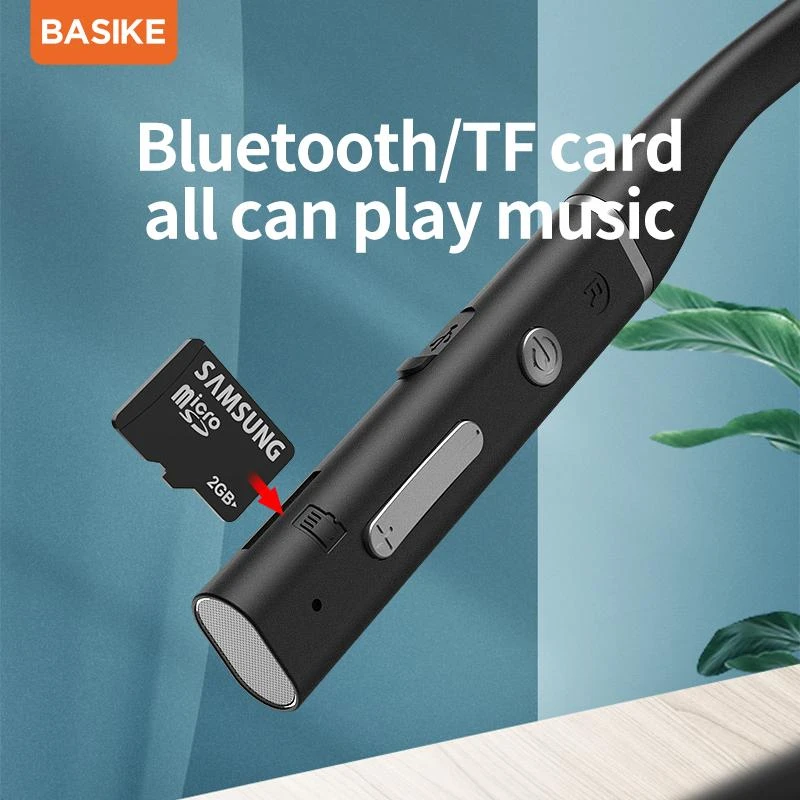Product details of BASIKE TW50 Original In-Ear Headphones Wireless Earbuds Bluetooth Earphones Neckband Headphone Neck Hanging Ear Non-In-Ear Earbuds Soft Silicone IPX5 Waterproof Sport Earphone HD Stereo Headset Magnetic Headphones(SD card can be insertedοΌ