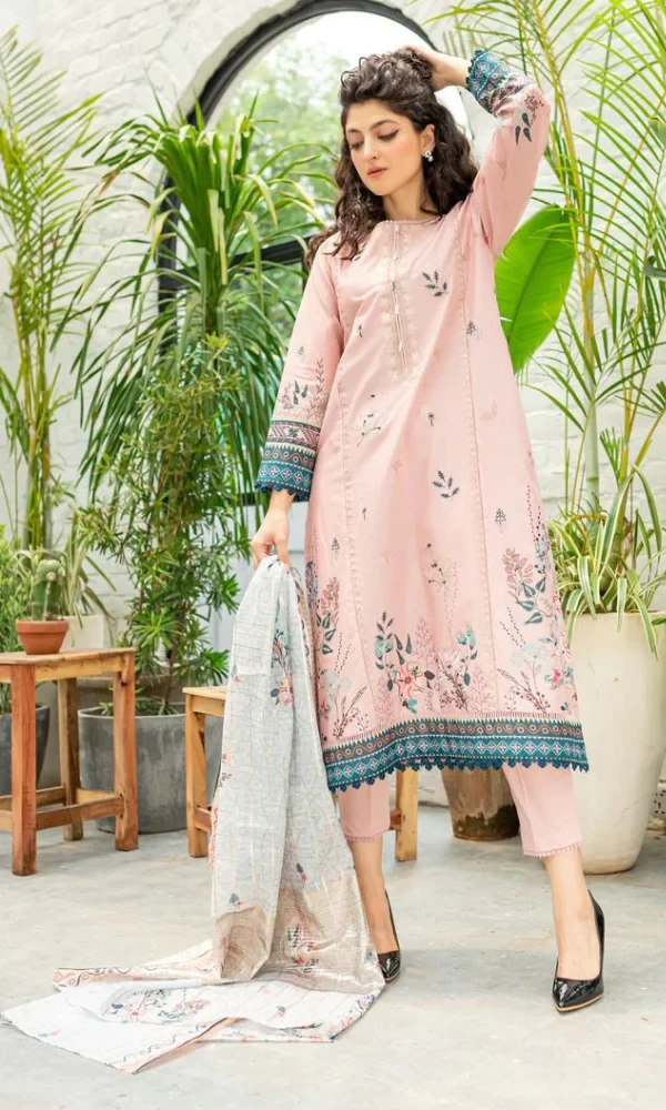 Batik-3PC Linen Embroidered Shirt With Organza (D)