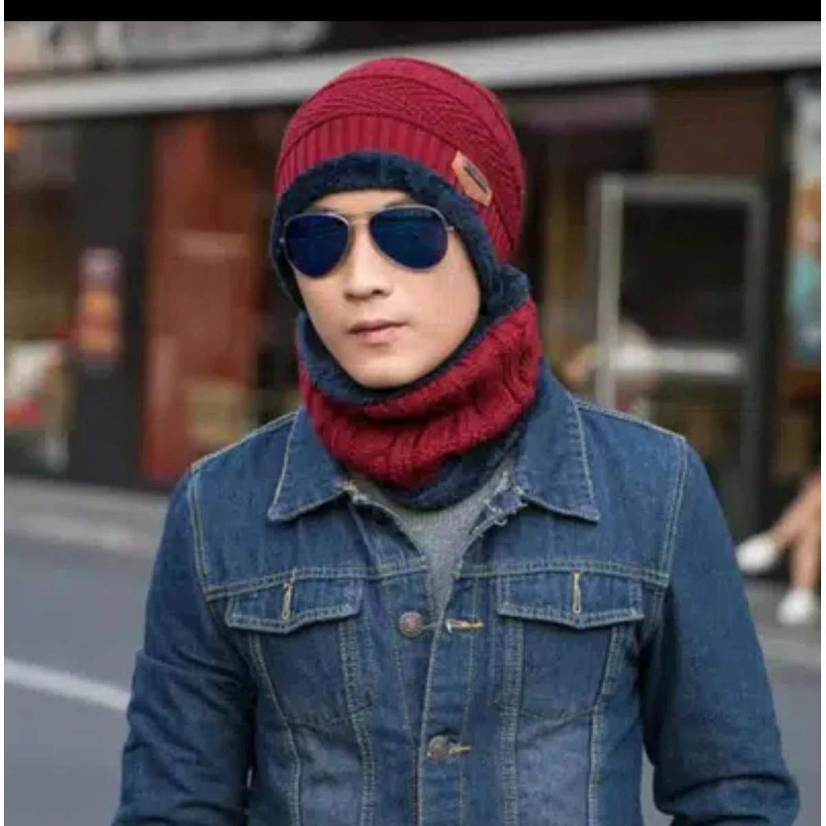 Beanie Full Set-2 Piece Cap + Neck Warmer/Hat & Warmer/Topi Hat Cap Neck Warmer Muffler Beanie Cap Neck Warmer