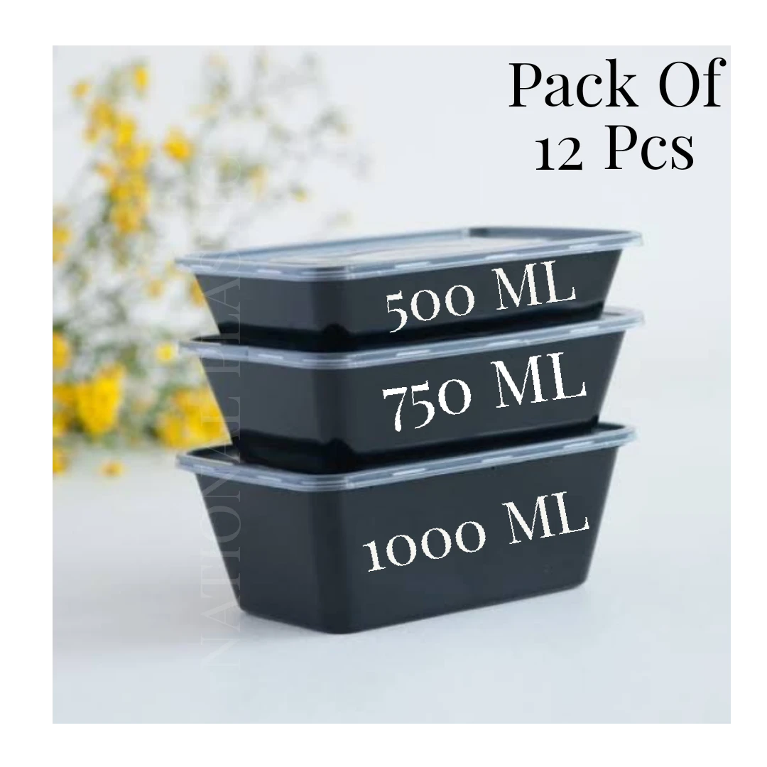 Product details of Black Food Container Disposable Boxes rectangular 500ML 750 ML 1000 ML Pack Of 12 Pcs