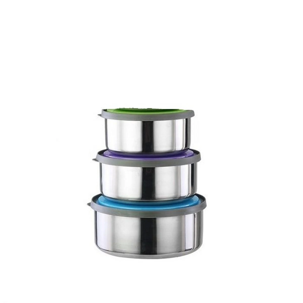 Product details of Bowl 3 piece round Steel Mixing or Food Bowl Set with Lid