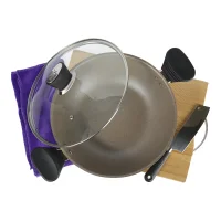 Product details of BRIGHT – Non Stick Wok/Karahi with Glass Lid – 24 to 34cm