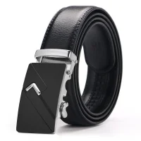 Business Men’s Automatic Buckle Waist Genuine Cow Leather Belts Waist Belts – Silver