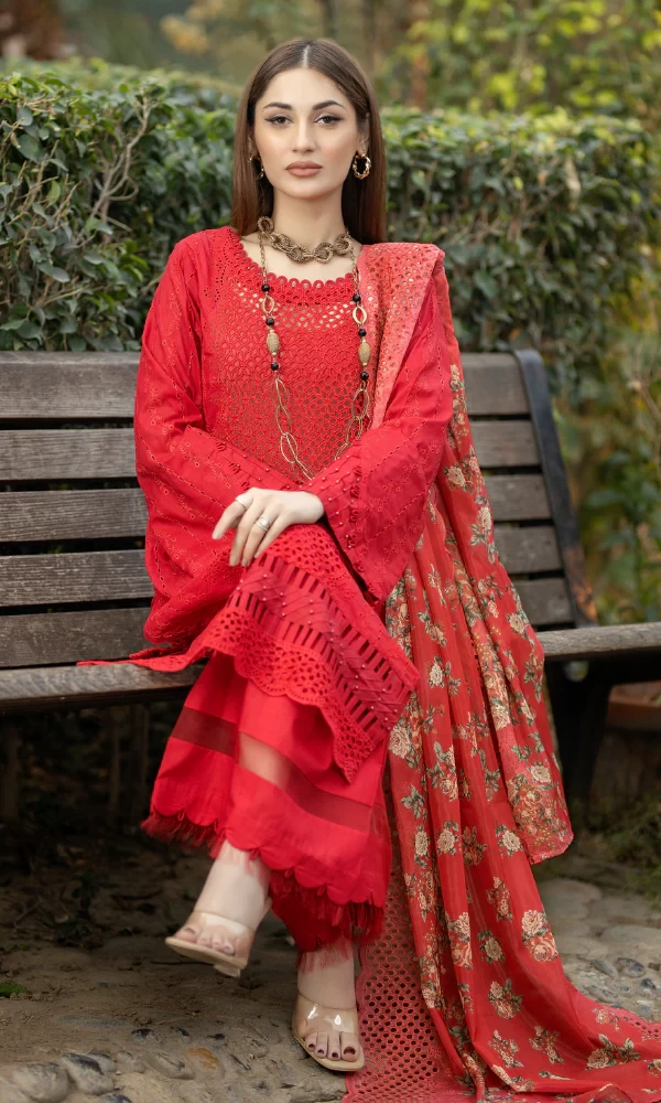 Orgnza sequence digital printed dubbta & 4 border pallu embroidery chkien kari embroidery