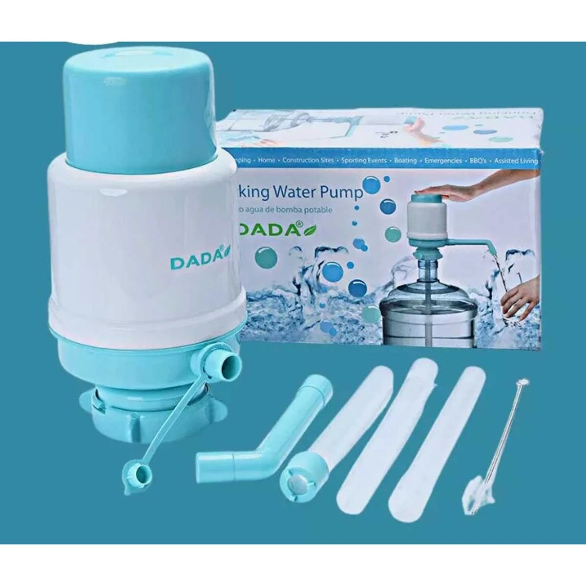 Dada Drinking Water Hand Press Pump is easy to assemble and Used for pumping water from water Bottles, The pumpβs adapter fits most standard water bottles and can be switched to a different bottle in just seconds. suitable for home, office, school, factory, hospital, camping, sports, and more. Key Features Easy to use β just press down the pump head. Innovative vacuum action for easy pumping.240 ml glass fill in only 2 presses Polypropylene & Polyethylene (FDA Approved)Material Usable on Standard 19 Litre bottles Easy to pour Long life span and easy to clean Removable tubes for easy cleaning.