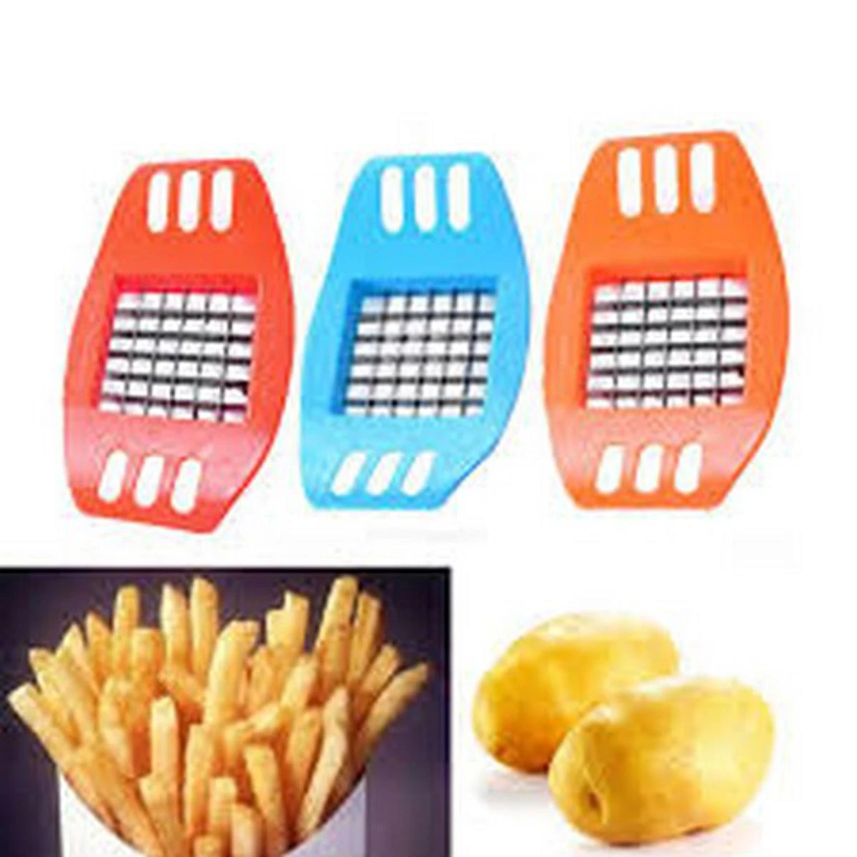 Easy-grip design Safe to use and easy to clean. A helpful tool in your kitchen. Newest Fashion French fries cutter slicer!! Convenient, simple, fast, and even. Portable to carry Net weight: 60g Size: 18*10*3cm Type: Potato Cutter Material: Stainless Steel, ABS Features: Multifunctional Cutting into Strips Tool Cuts apples and removes the core Easy to clean and wash Manual Slicer Chips Cutter Reliable Eco-Friendly Fruit & Vegetable Tools. Designed to quickly cut potatoes. Cuts apples and removes the core Sharp Blade Manual Slicer