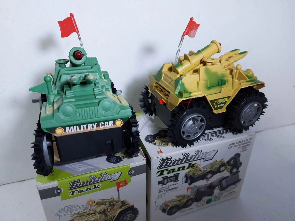 Whatβs in the box 1 X Electric Flashing Top Light Tambling Tank Toy For Kids
