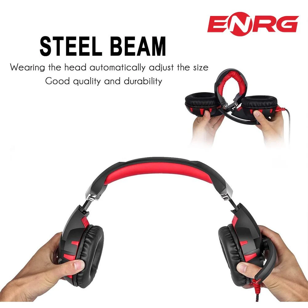 Product details of ENRG K2 Gaming Headset Headphone 360 Surround Sound Stereo Over-Ear Headphone with Noise Cancellation Microphone In-Line Control Red LED for PC PS4 Xbox Mobile