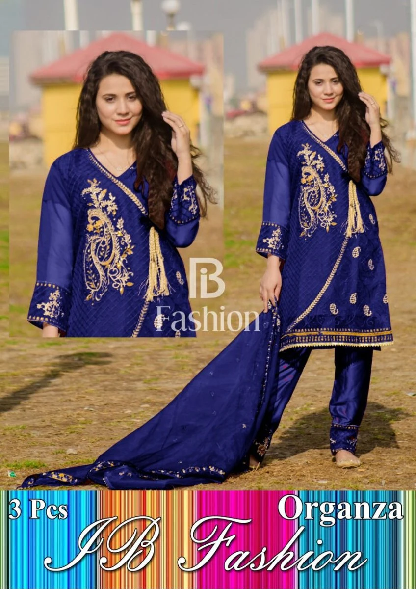 Fabric Organza 3 Pcs Shirt lenght 37/38 Trouser length 37/38 Dupptta embroidery 2.5 gaz Chest size 20/21 Price 2400/-