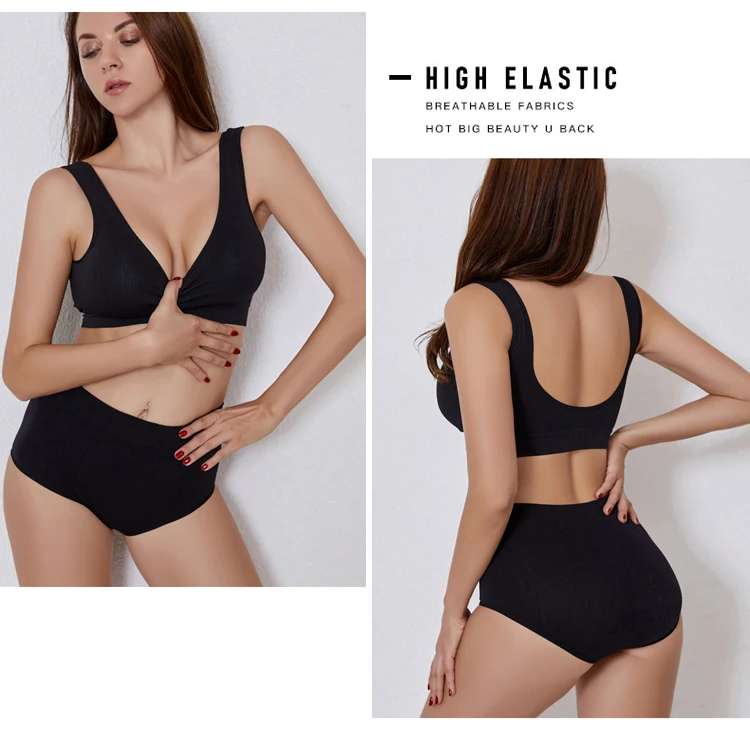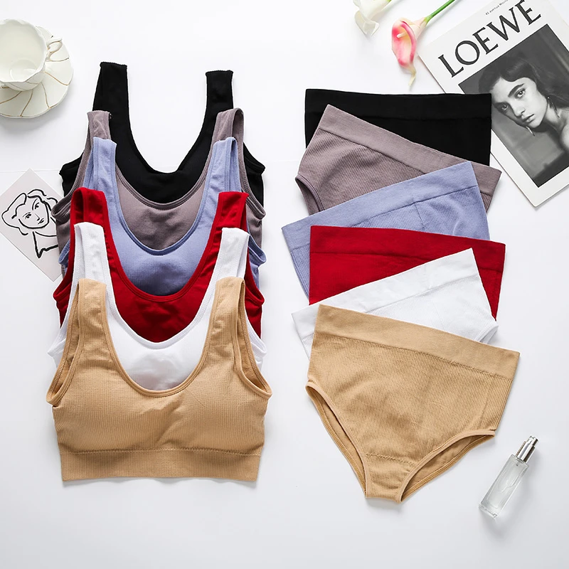 Product details of Fashion Simple Women’s Underwear Set Sports Breathable Panties Bra Set Lingerie Comfort Wire Free Bralette Striped Top Bras
