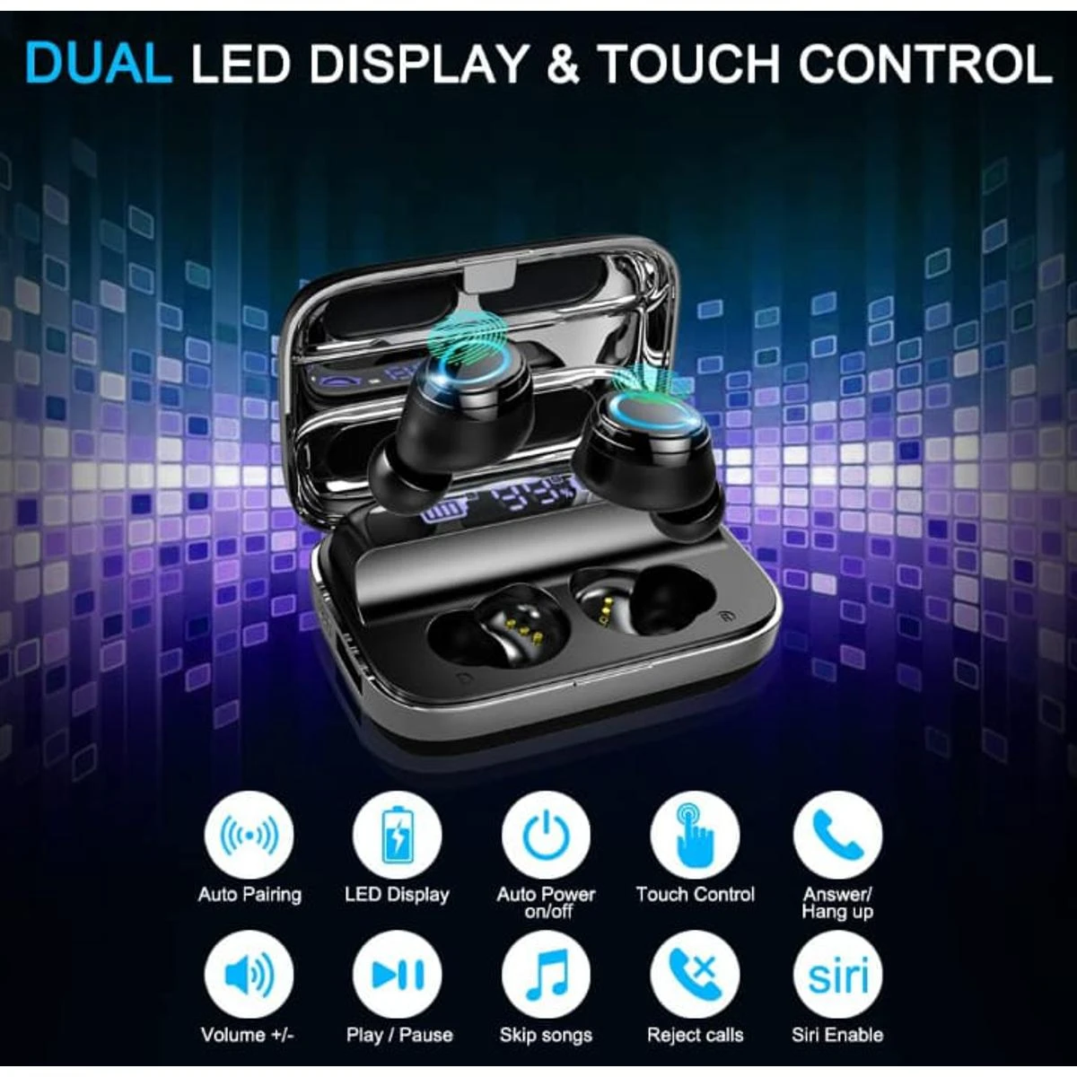 BRAND NAME :GEMS TRADERSBluetooth V5.1 supports most of the BlueTooth devices and lower power consumptionUp to 5 Hour battery life with a Large capacity built-in power bankWith waterproof technology, no need to worry about water and sweat anymoreDesigned for a more comfortable fit, the Popular touch control, support switching songs, phone call, volume control, and call voice assistantStrong compatibility, IOS/Android universal, one-button control, simple and stylish