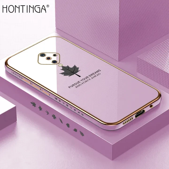 Product details of Hontinga for Vivo S1 Pro Back Cover With Lanyard Luxury 6D Plating Shiny Maple leaf Phone Case Soft Silicone Square Mobile Cover