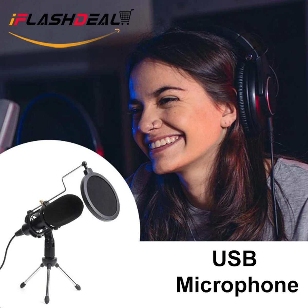 Product details of iFlashDeal Condenser Microphone Recording Studio Equipment Mic Kit Podcast 3.5mm Broadcast Microphone for YouTube Vlogging singing Compatible with Phone Laptop PC
