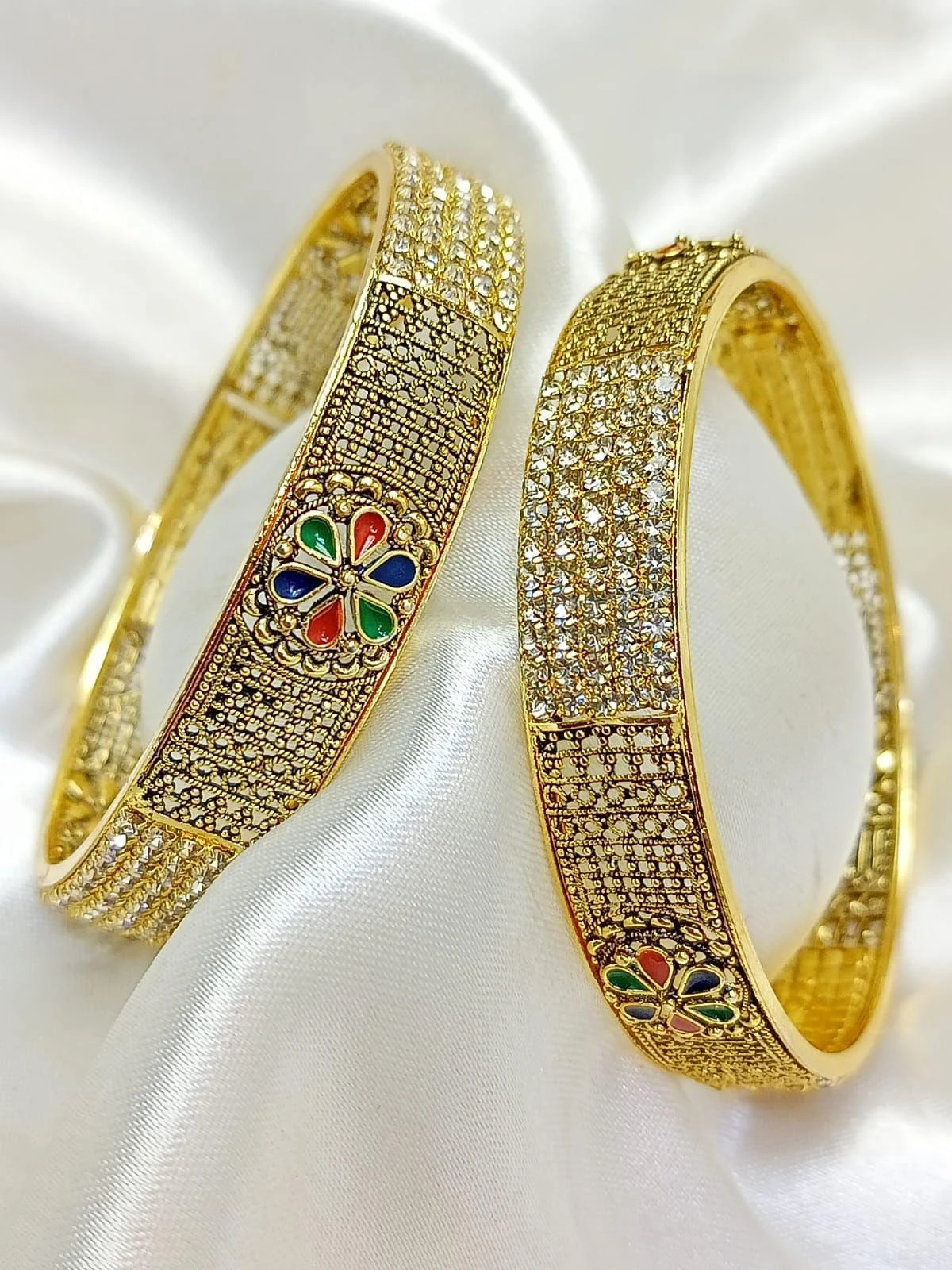 Indain bangels Jarao stone A one quality 2 design Size 2.4 2.6 2.8 Rs 1200 pair Without box