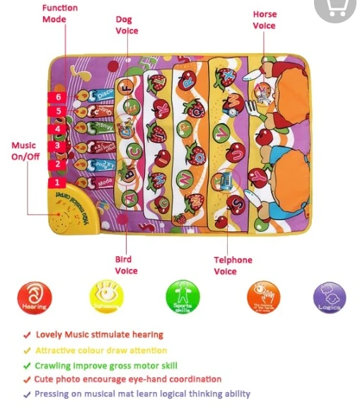 3. Musical carpet is comfortable and durable, light and easy taking, easy washing. Thick enough to protect babies from falling. Pave on the floor to avoid dirty and cool.