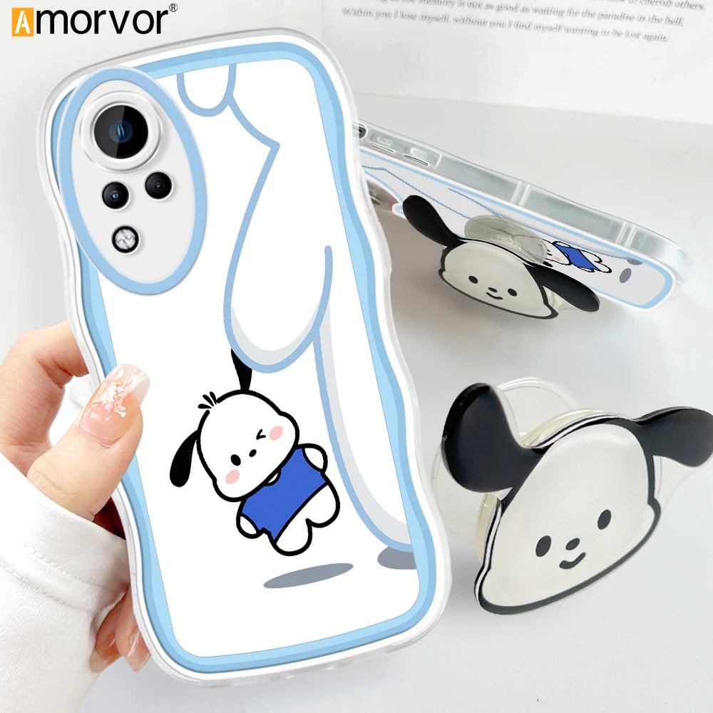 Product details of AMORVOR for Infinix Note 11 / Note 12 G88 Back Cover (With Free Holder) Melody Kuromi Soft Wavy Phone Case Camera Protection Transparent TPU Soft Cover