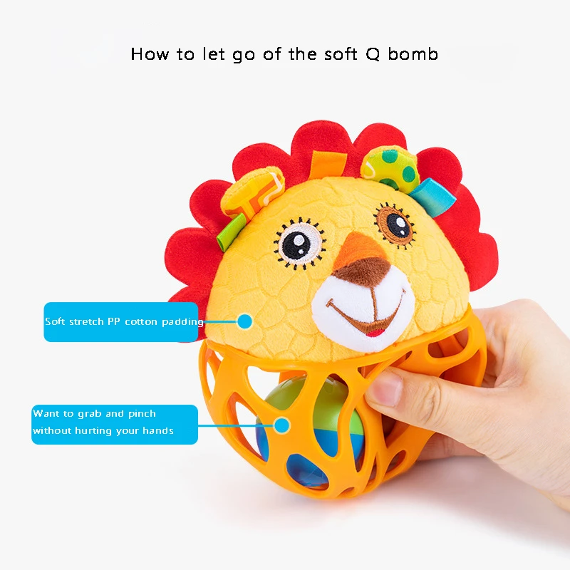 Product details of JOLLYBABY Baby Cloth Toys 0-12 Months Rattle Ball Teether Tactile Perception Animal Learning Plush Hand Grasp Ball Lion Ball