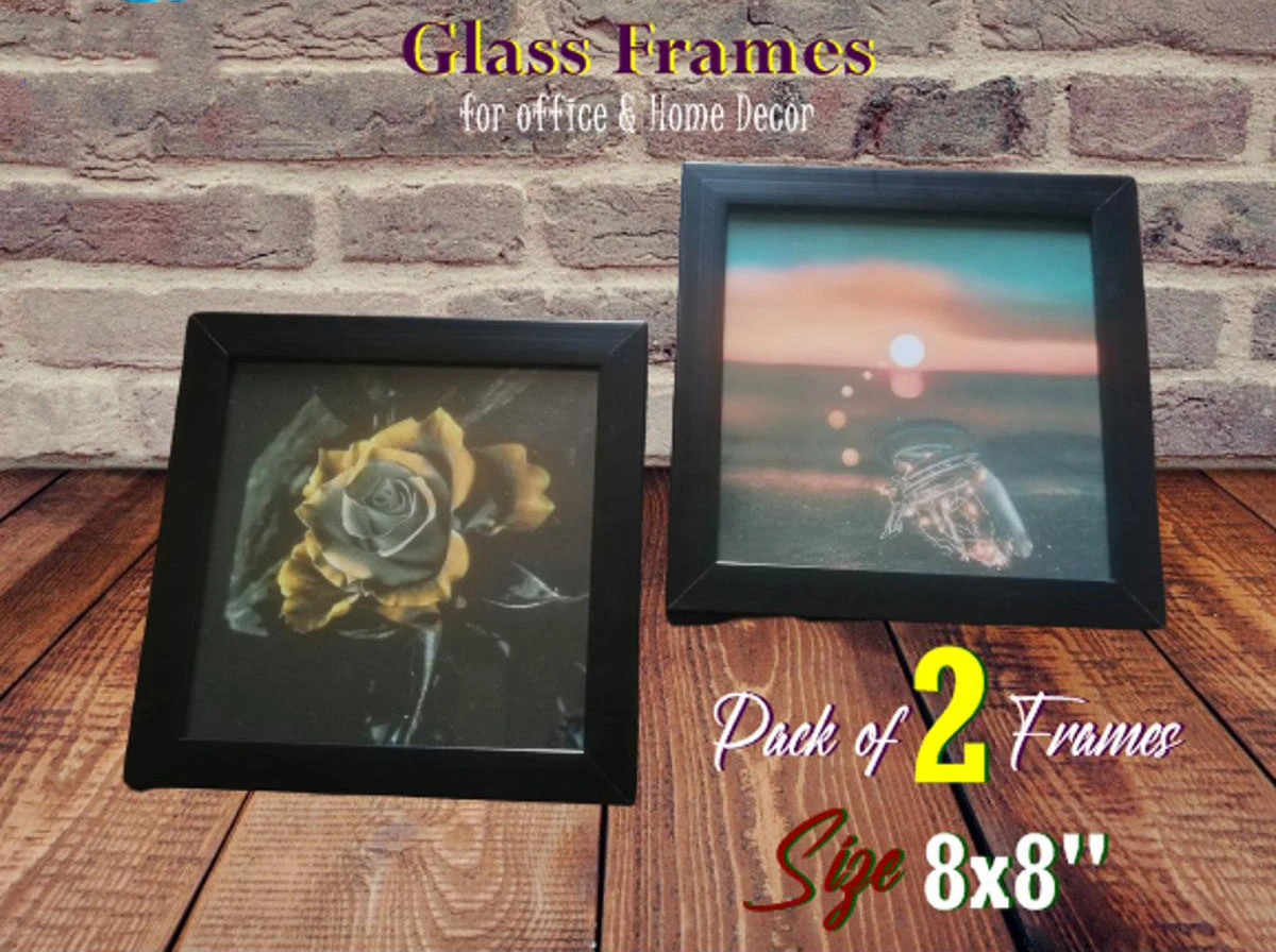 Pack of 2 Glass Frames – for Home & Office Wall Décor – Size 8×8″ Each