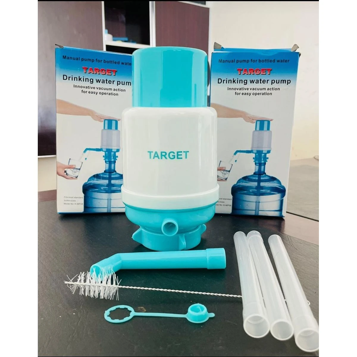Full Size Premium Quality Drinking Water Hand Press Pump Manual Bottle Water Dispenser for 19 Liter Water Bottle /5 GallonThis pressure water pump is specially used as water absorption tool for distilled water and super pure water user.Fitting in with various capacity of water bottle,it features convenience,saving labour,health and free water flowout,which is suitable for family,school,office and camp.