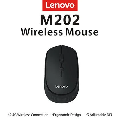 Product details of Lenovo M202 2.4GHz Wireless Mouse Office Mouse 4 Keys Mute Mice Ergonomic Design with 3 Adjustable DPI for PC Laptop Black