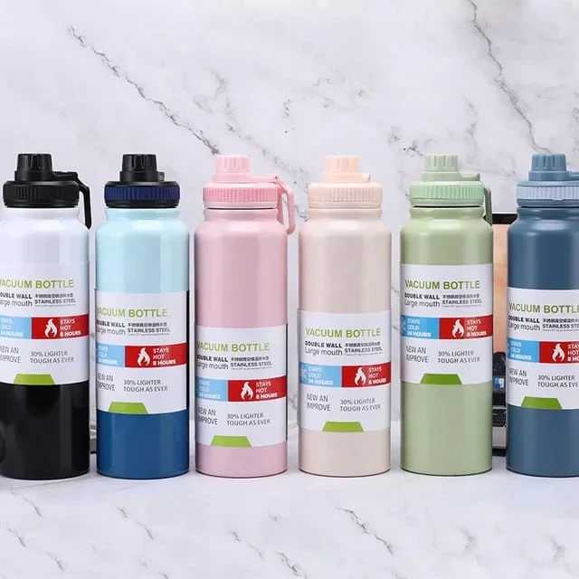 Vacuum space water bottle outdoor travel sports heat preservation water bottle large capacity stainless steel with rope