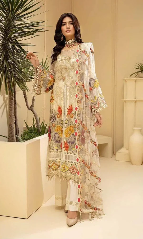 Embroidered Lawn Front Embroidered Lawn Sleeves Embroidered Organza Duppata Dyed Lawn trouser