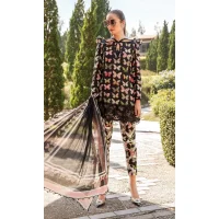 Maria.B – 3PC Lawn Printed Embroidered Shirt With Printed Silk Dupatta