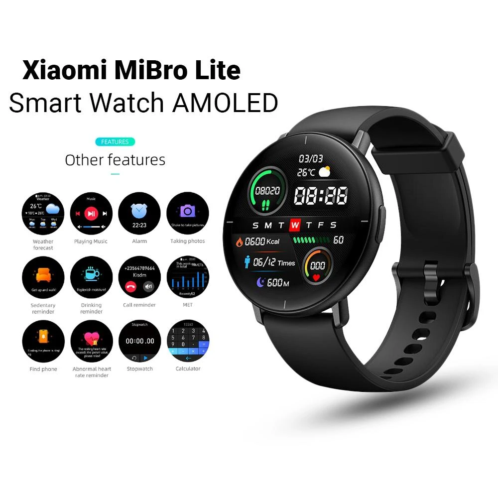 Product details of MIBRO LITE AMOLED SMART WATCH WATERPROOF WITH HEART RATE SENSOR (ORIGINAL)