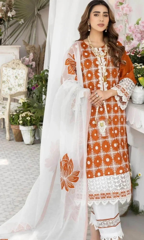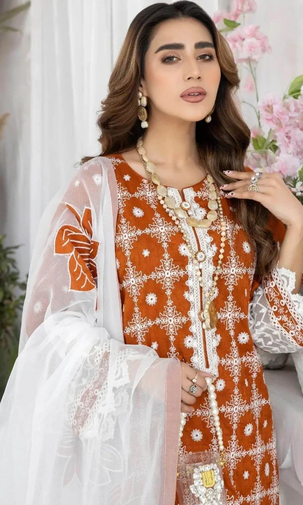 Mohagni- 3PC Lawn Embroidered Shirt With Printed