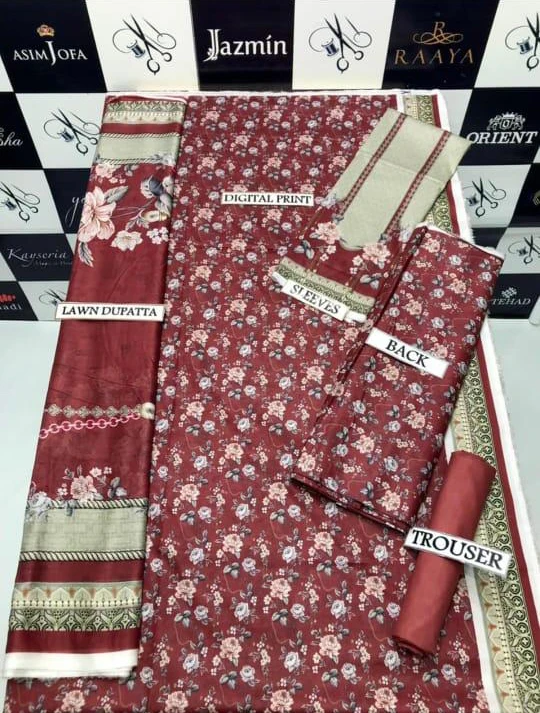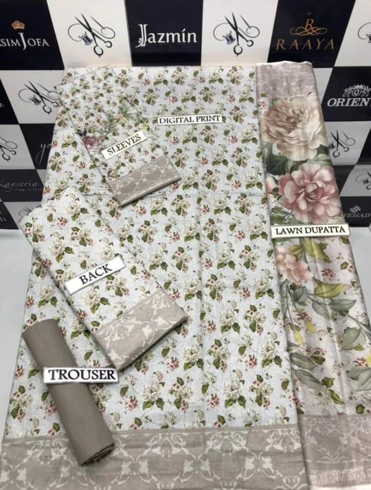 3 Piece Digital Printed Airjet lawn