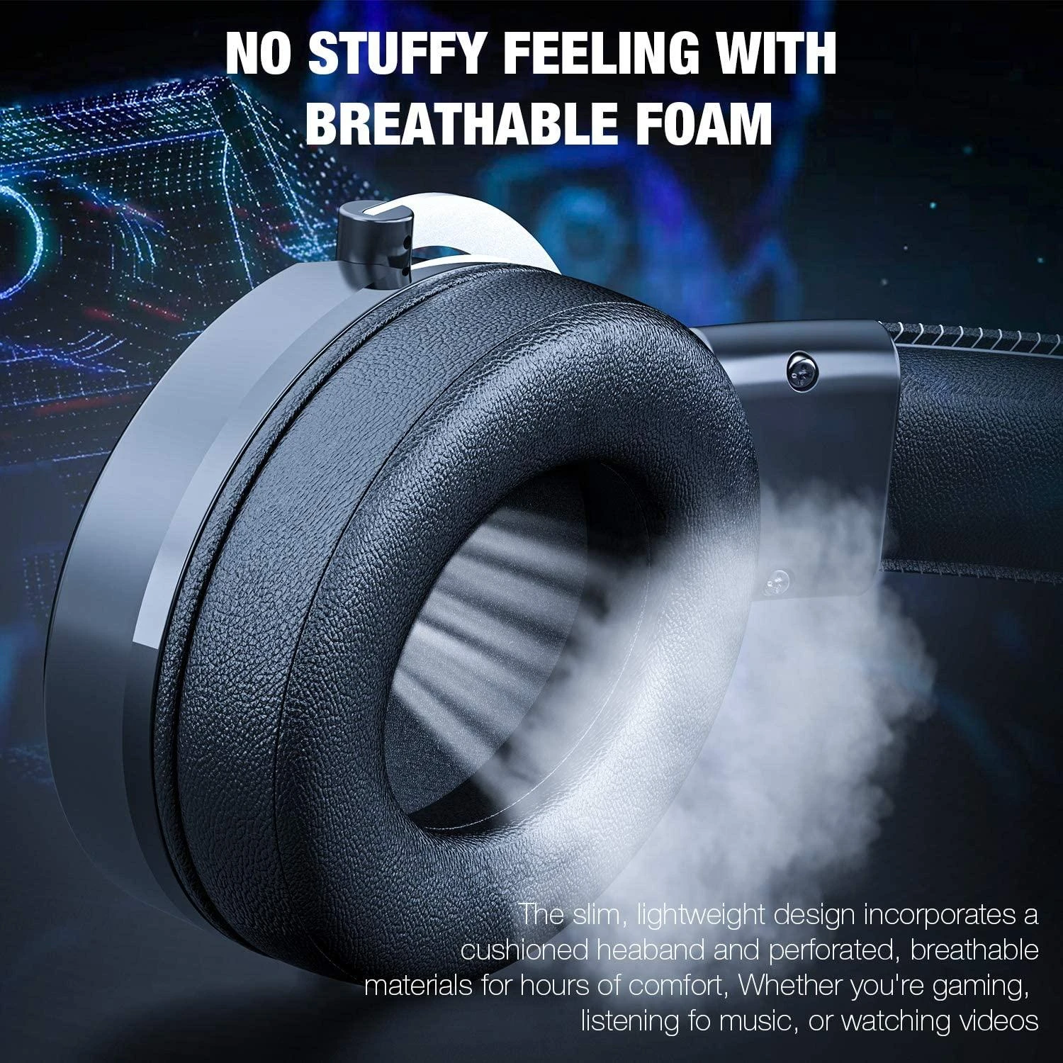 All Day Comforty&Effective And Reliable After-Sales Service: Our gaming headphones are slim and lightweight with good air permeability protein over-ear pads reducing sweating and stuffiness. The PC headset has skin-friendly leather material providing a long-time wearing comfy.