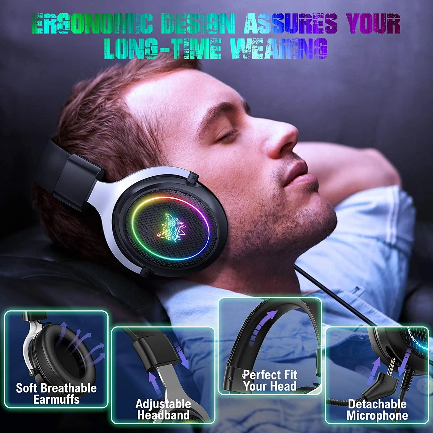 ONIKUMA X10 RGB Gaming Headphone 50mm Driver 360 Surround Sound With Detachable Noise Cancellation Microphone Bionic Protein Earmuffs For PC Laptop PS4 PS5 Xbox Mobile – Black