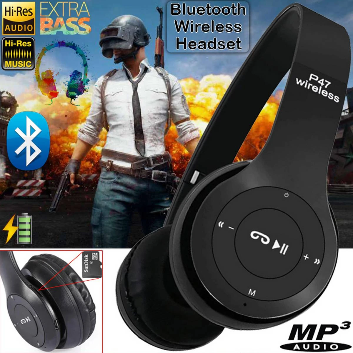 Product details of P47 Wireless Bluetooth Foldable Headset With Microphone FOR All cell phones and laptop used