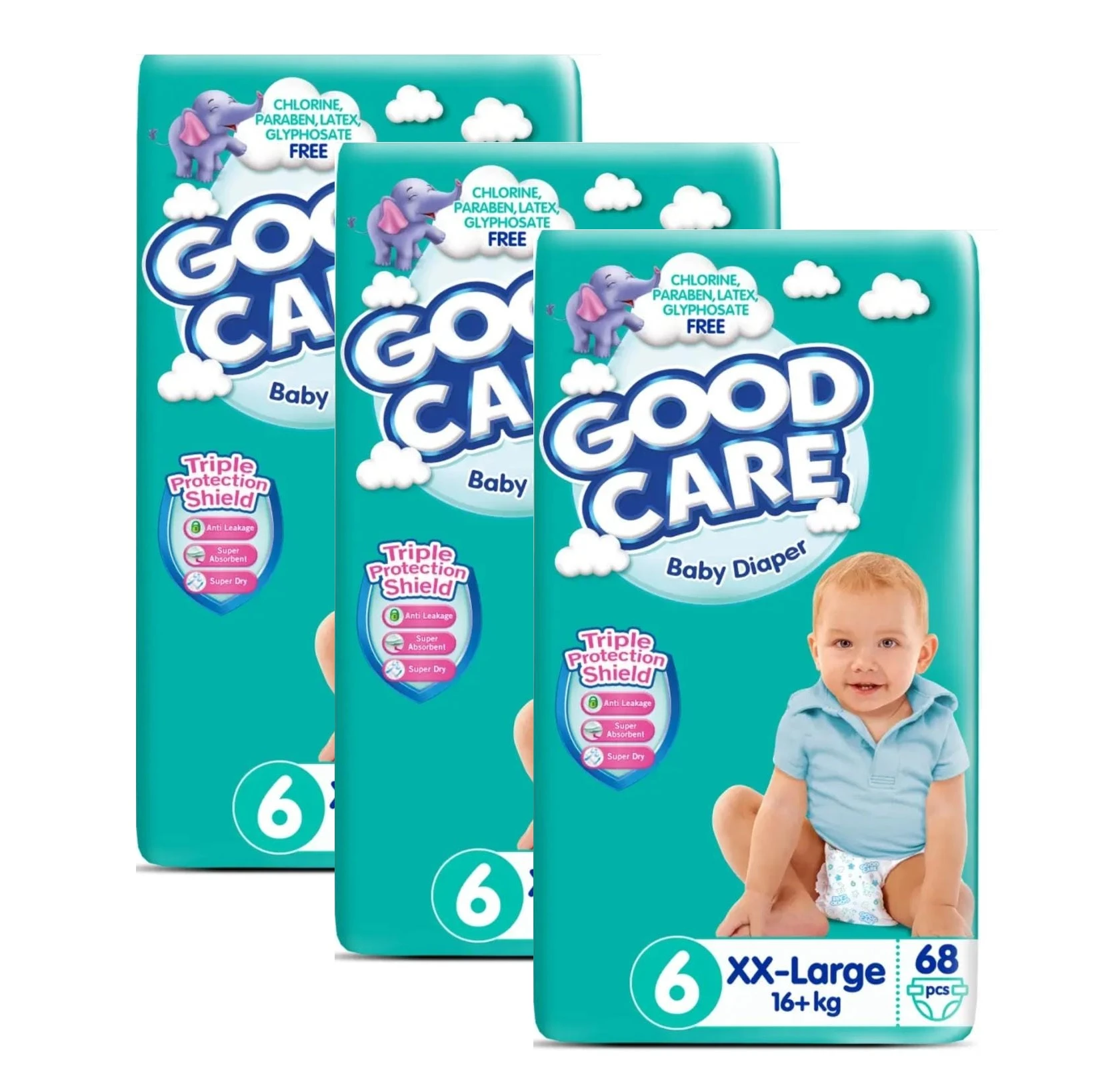 Product details of Pack of 3 Good Care Diaper jumbo pack Size NO 6 XXL Extra large 68 Pieces ( 16 + kg )