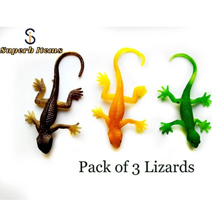 Specifications of Pack of 3 Rubber Lizards / Rubber Lizard Toy / Black, Green & Yellowish Chipkali Lizards Prank Items Toys