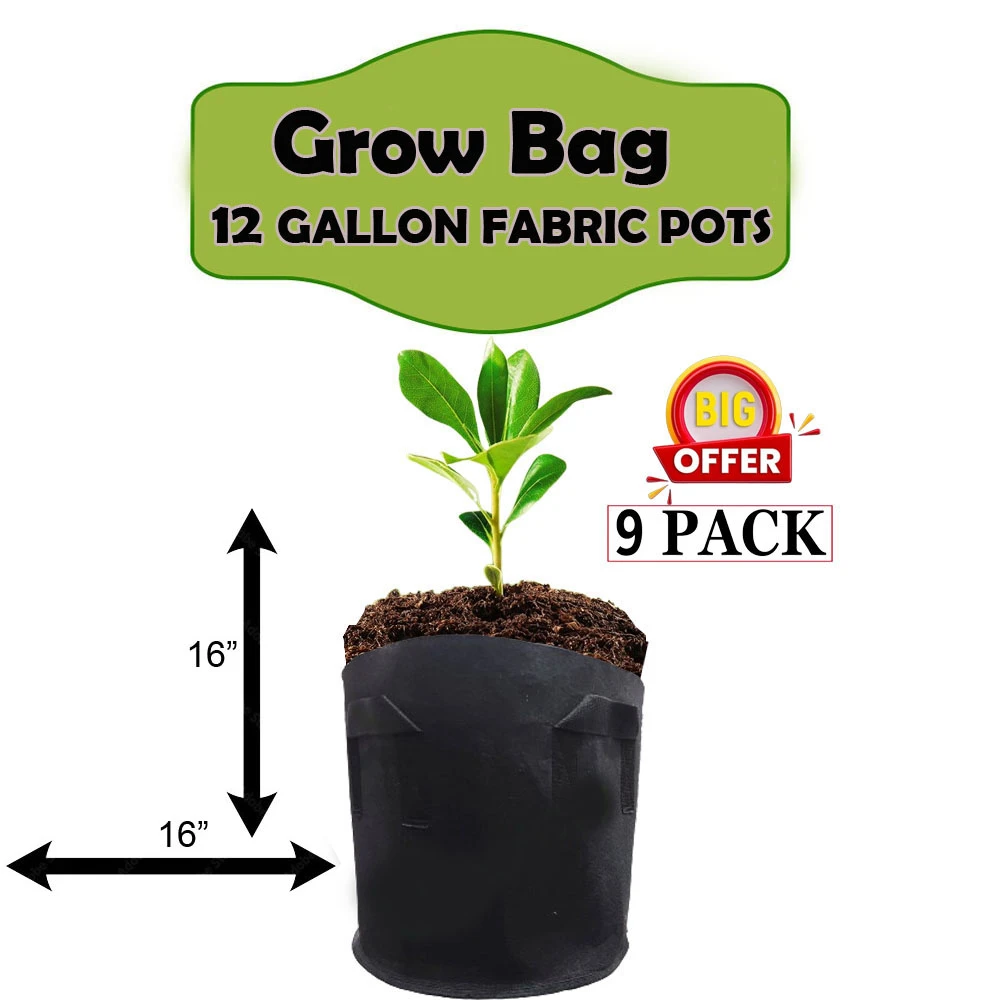 Pack Of 9 Grow Bag I 12 Gallon Fabric grow bag 16X16 I Plant Bag I for Kitchen Gardening (OtZ9)