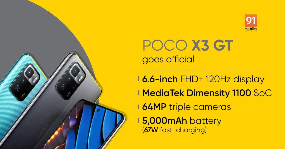 Specifications of Poco X3 GT -Speed Past Power – 6.6″ FHD + Dot Display – 64MP Triple Camera – 8GB RAM 128GB ROM – 5000 mAh Battery 41 Ratings174 Answered Questions
