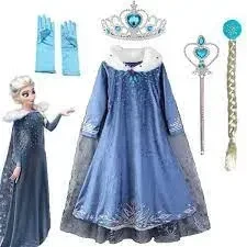 PRINCESS ELSA DELUXE COSTUME FOR KIDS WITH ACCESSORIESINCLUDINGWAND, CROWN, WHITE LONG GLOVES, AND BRAID