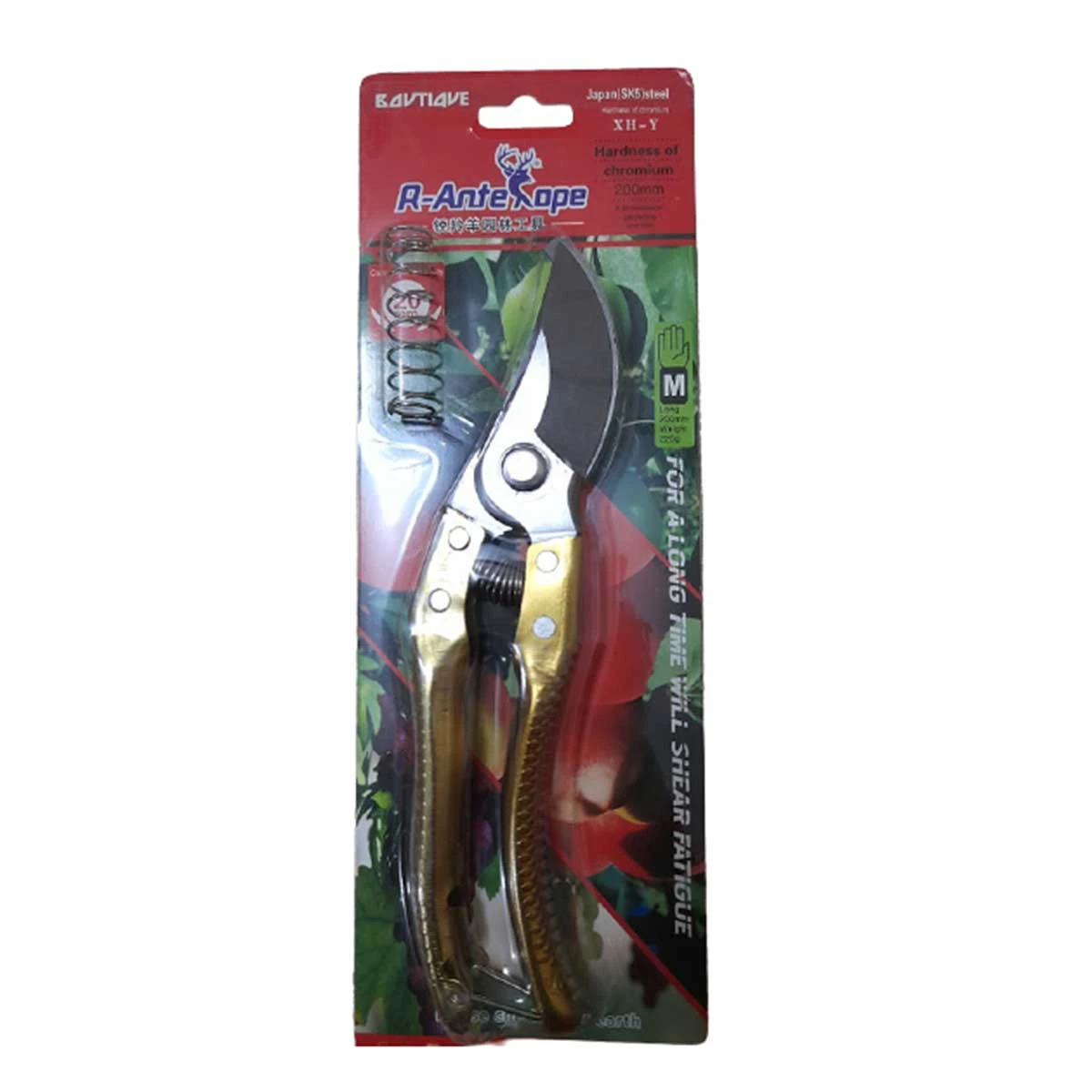 Highlights 1. Size: 8inches2. Material: sharp stainless steel blade3. color: available in multi-color 4. Application: use by gardeners for pruning small branches of tree/plant