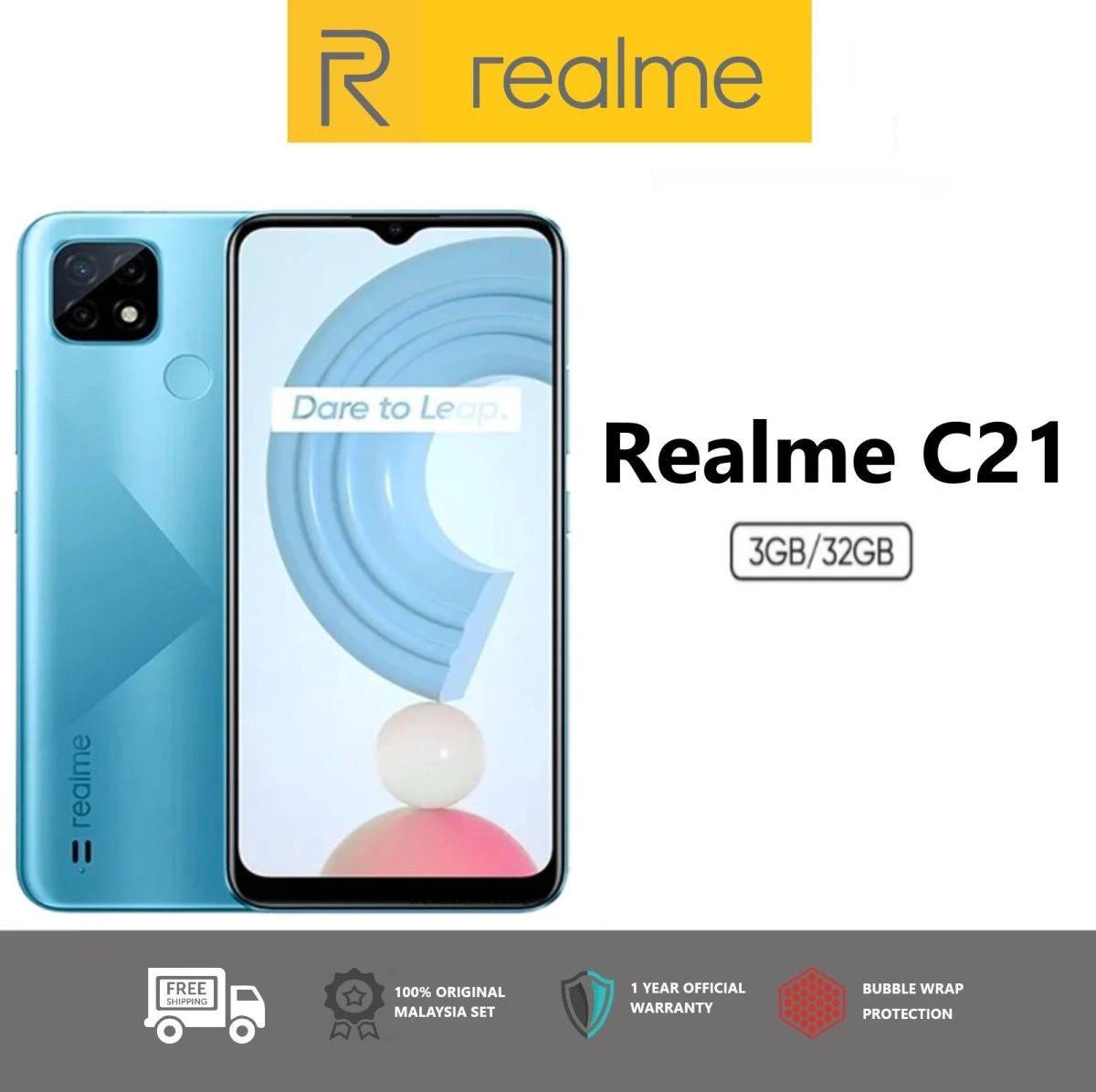Product details of Realme C21 || 3GB Ram 32GB Rom || 6.5 Inches IPS Display || 5000 mAh- Battery Charging 10W, Dual Sim Fingerprint Official 1 Year Warranty