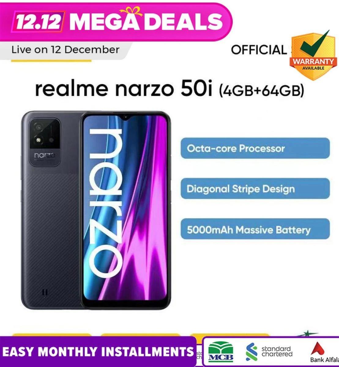 Product details of Realme Narzo 50i – 6.5″ Inch Display – 4GB RAM – 64GB ROM