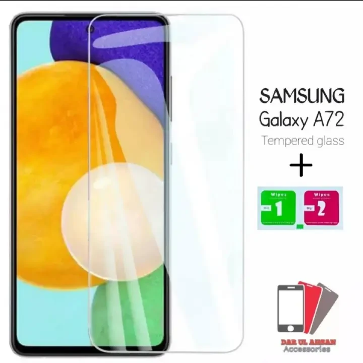 Product details of Samsung Galaxy A72 – Tempered Glass Screen Protector Polished Glass – With Cleaning Wipes