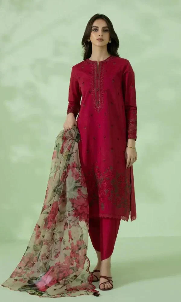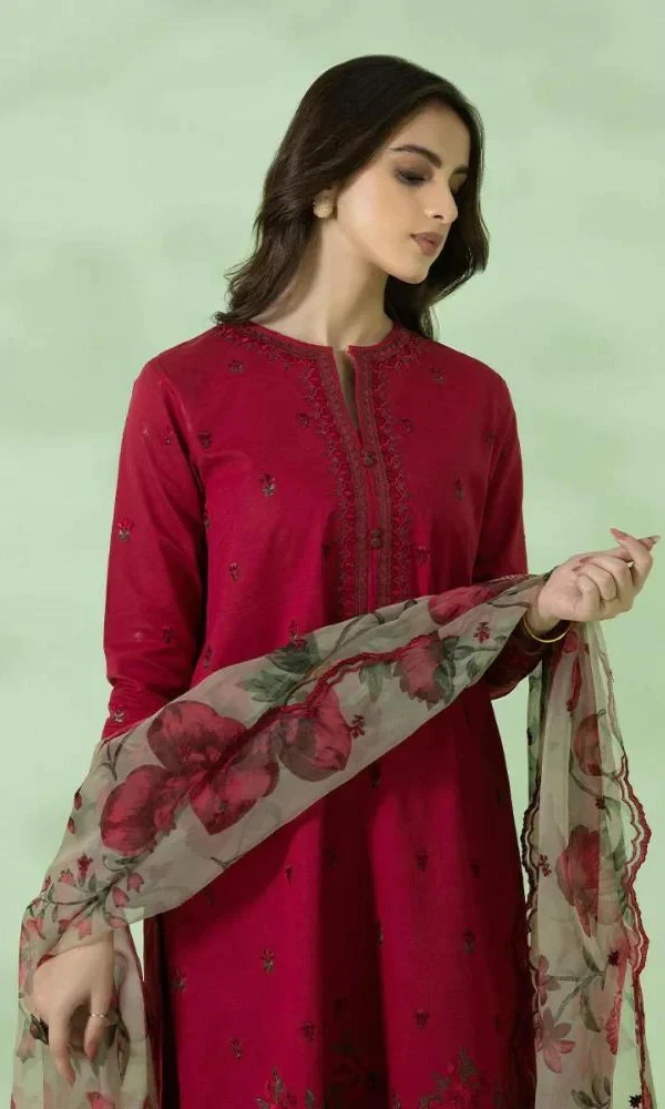 Sapphire – 3PC Lawn Heavy Embroidered Shirt With Paper Cotton Printed Dupatta