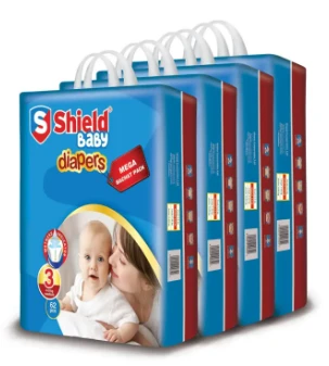 Product details of Shield Baby – Diaper Mega Bachat Pack Medium (62-Diapers, 04-09Kg, Pack of 4)