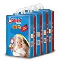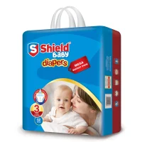 Wrap your baby in blanket-like softness with Shield Diapers. It keeps your baby dry and protects all day long and gives them a comfortable sleep. The frontal tape Velcro system holds the diaper firmly so that your baby can play and move easily. Internal gel layer allows immediate absorption.
